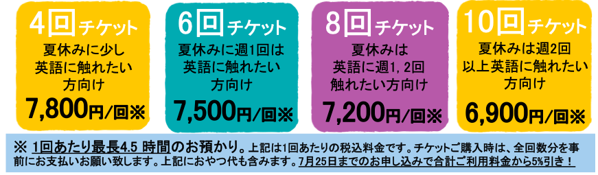 夏休み午後スポット利用のご案内(チケット制での英語学童クラス利用)